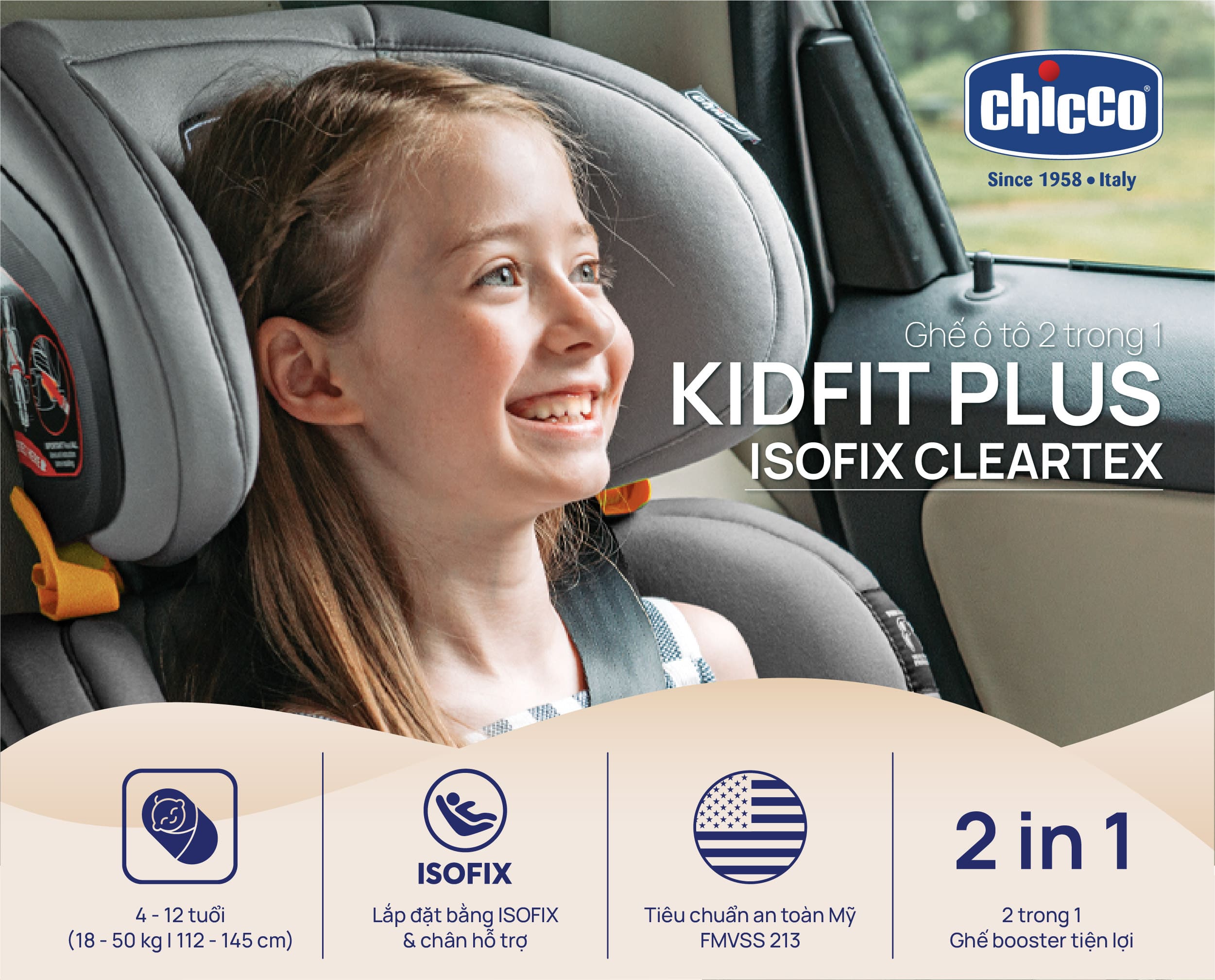 Ghế ô tô Chicco KidFit Plus 2 trong 1 ISOFIX ClearTex